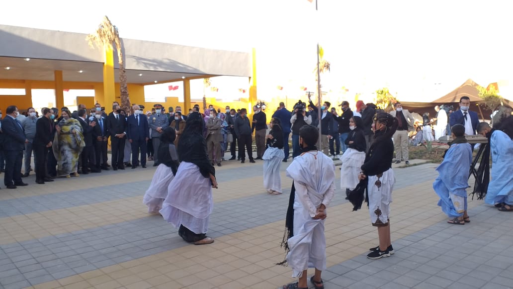 هذا وشهد رحاب المؤسسة التعليمية تقديم وصلات واغاني تراثية من اداء التلاميذ احتفاء بزيارة الوزير والوفد المرافق له .