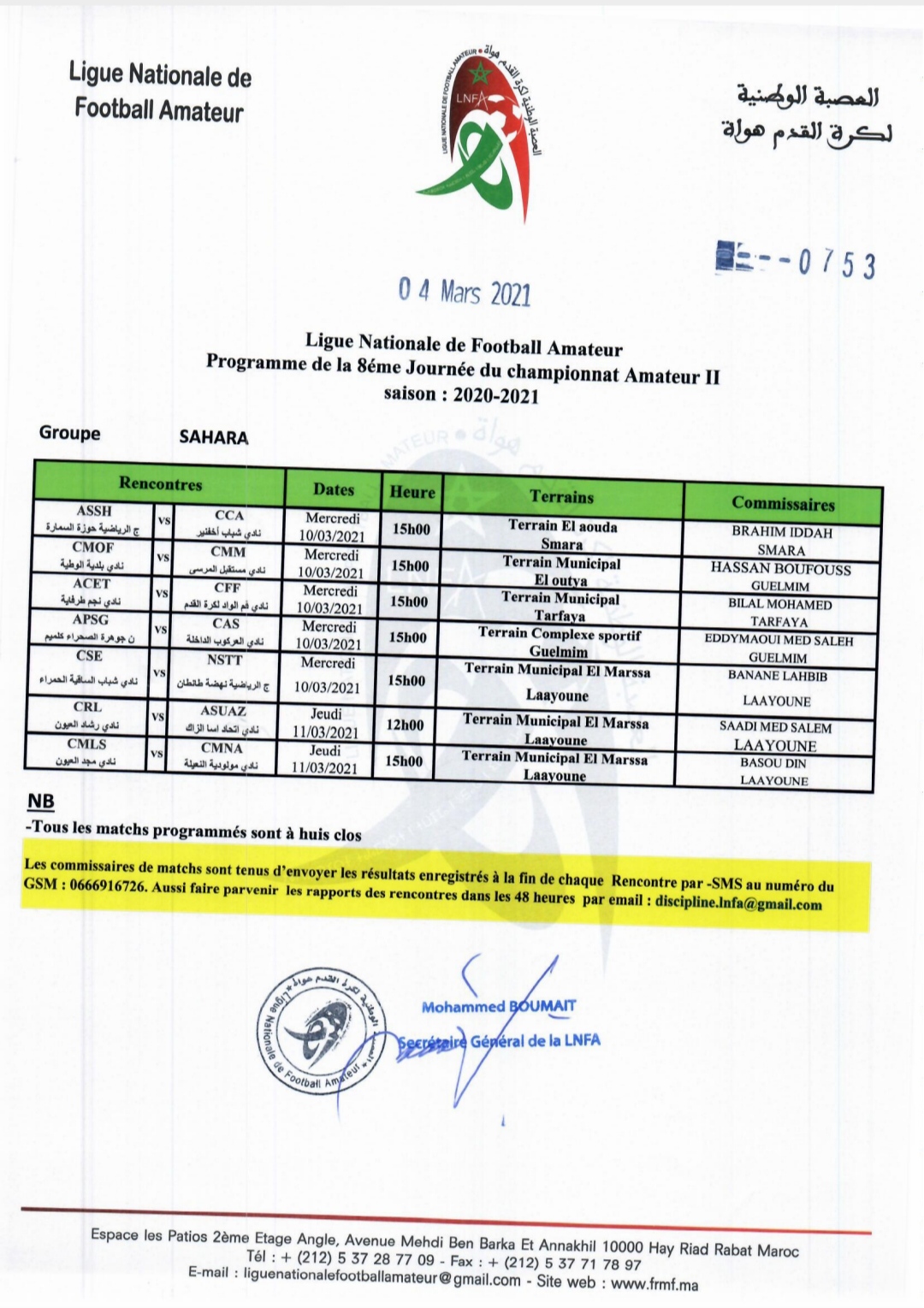 رياضة العصبة الوطنية لكرة القدم هواة تفرج عن برنامج منافسات شطر الصحراء By admin في مارس 8, 2021 0 نشر صحراء توذوس العيون 0 نشر FacebookTwitterGoogle+WhatsAppالبريد الإلكترونيTelegram