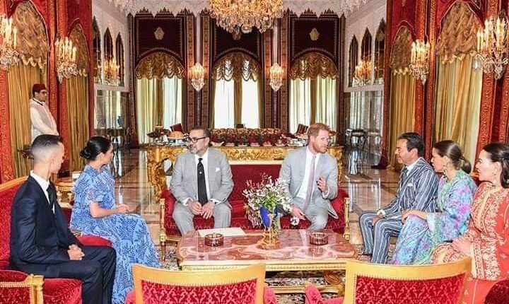 أقام الملك محمد السادس، اليوم الاثنين مرفوقا بصاحب السمو الملكي ولي العهد الأمير مولاي الحسن، حفل شاي على شرف الأمير هاري، دوق ساسيكس، وعقيلته ميغان ماركل دوقة ساسيكس، اللذين يقومان بزيارة للمملكة.