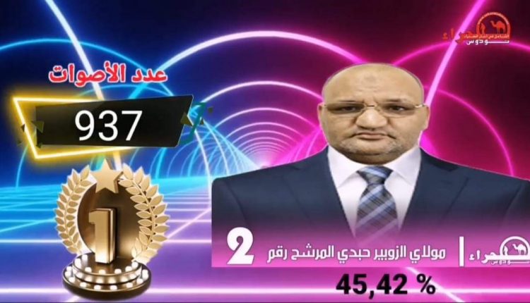 وعليه، فإن إدارة جريدة “صحراء توذوس” تعلن أن النتائج النهائية بعد عملية الفرز والإحصاء، أظهرت تقدم مرشح حزب الاستقلال في شخص ممثله مولاي حبدي الزبير الذي جاء في المرتبة الأولى بنسبة 45,42 %، أي ما يعادل 937 صوت.