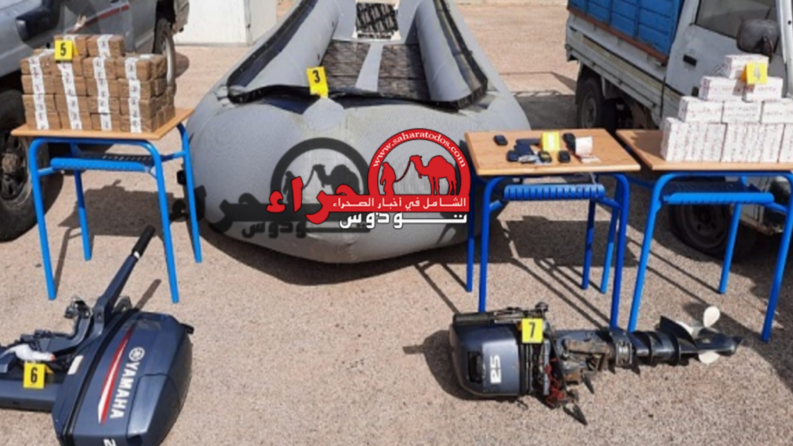 وحسب مصدر موثوق، لجريدة “صحراء توذوس” فقد جرى توقيف المشتبه فيهما خلال عملية أمنية بمدينة العيون، وأسفرت عملية التفتيش عن حجز قارب مطاطي ومحركين بحريين وسيارتين.