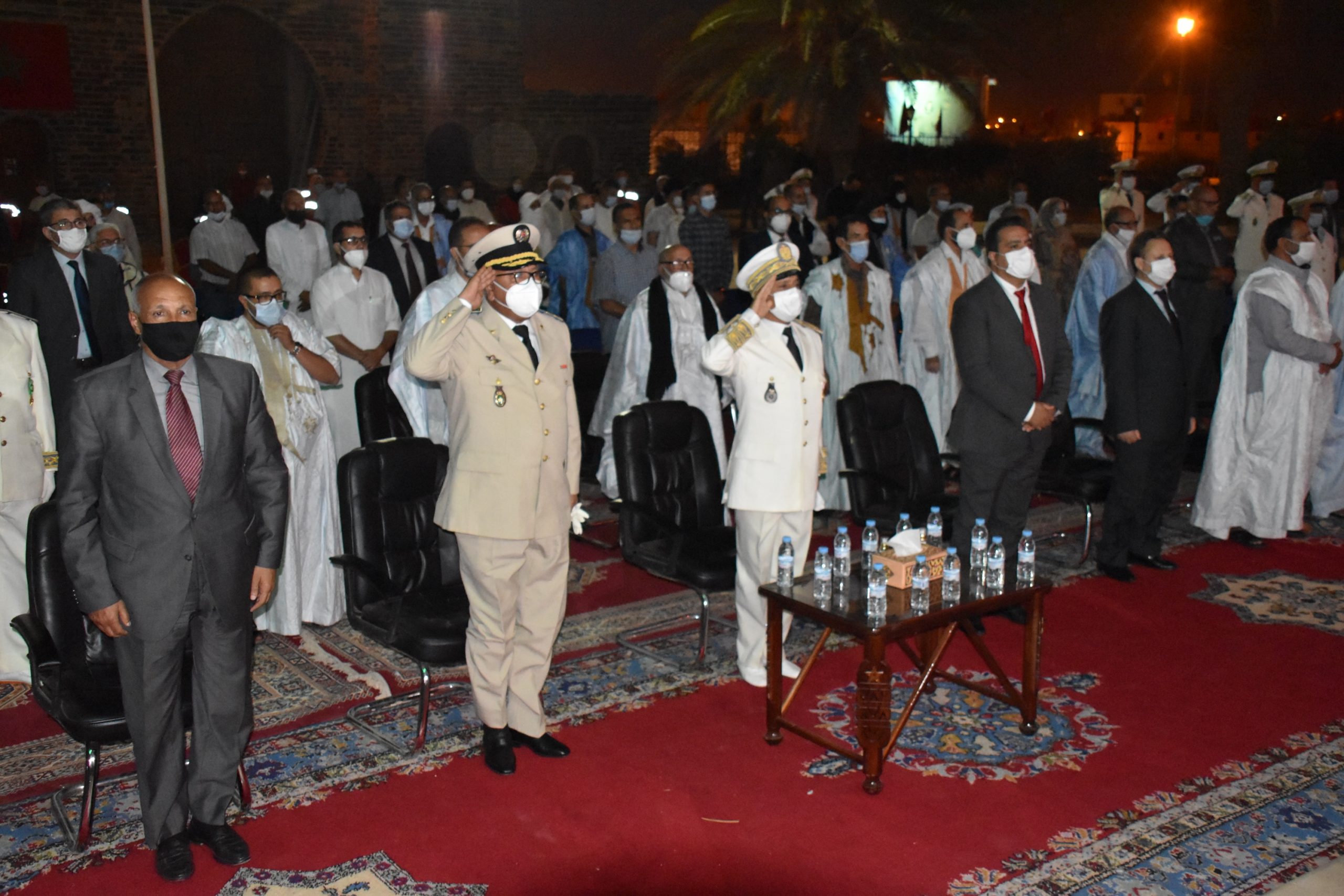 وجرت مراسيم الانصات للخطاب الملكي السامي، من طرف عامل مدينة السمارة ونخبها وساكنتها، وسك إحترام تام للتدابير والاجراءات الاحترازية ضد تفشي فيروس كورونا.