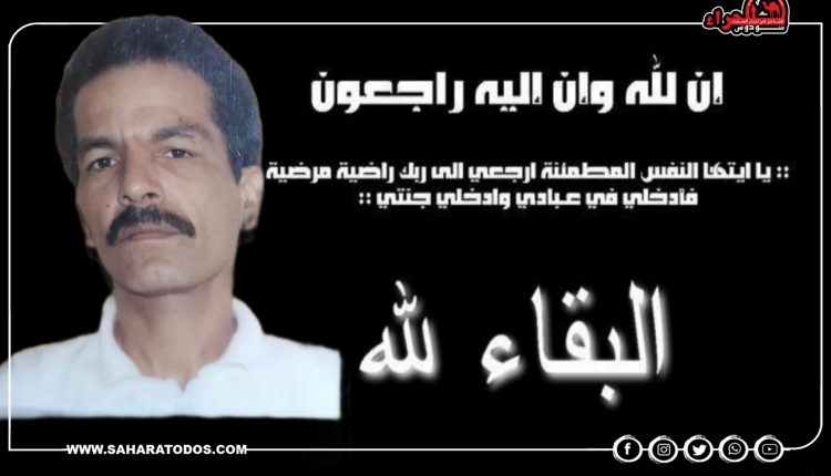 ببالغ الأسى والحزن تلقينا نبأ وفاة المرحوم بإذن الله “سيدي المحفوظ ولد حمودي ولد كويرينة” عم الزميل والمدير العام لمؤسسة “صحراء توذوس” يوسف لميسي، الذي وافاه الأجل وغادرنا لدار البقاء بعد صراع مع المرض بمدينة الرباط..