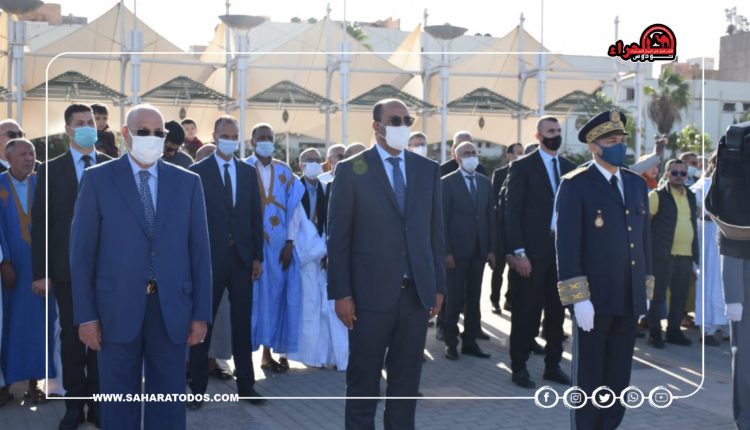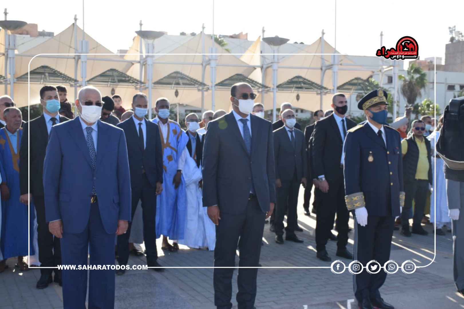 مراسيم تحية العلم الوطني بالعيون، شهدت حضور مولاي حمدي ولد الرشيد رئيس جماعة العيون، وسيدي حمدي ولد الرشيد رئيس المجلس الجهوي، ووالي الأمن حسن أبو الذهب، وكذا رؤساء الجماعات الترابية والغرف المهنية، والنواب والمستشارين البرلمانيين، وثلة من الشخصيات المدنية والسياسية والعسكرية.