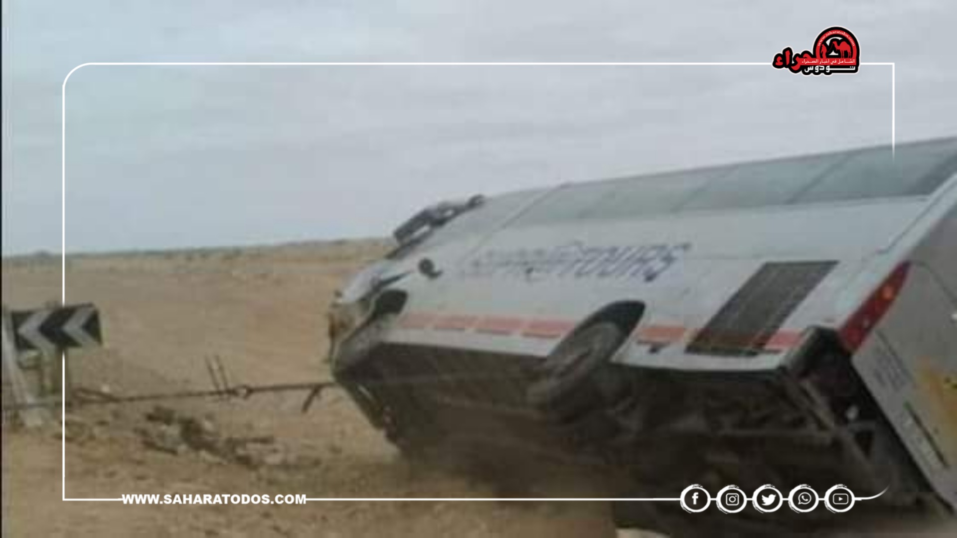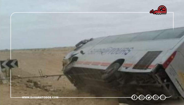 وذلك بعد إنقلاب حافلة تابعة لشركة النقل “سوبراتور” قادمة من اكادير في اتجاه مدينة السمارة، بعد محاولة سائق الحافلة تجنب الاصطدام بأحد الجمال التي كانت تمر على الطريق تو الحادثة.