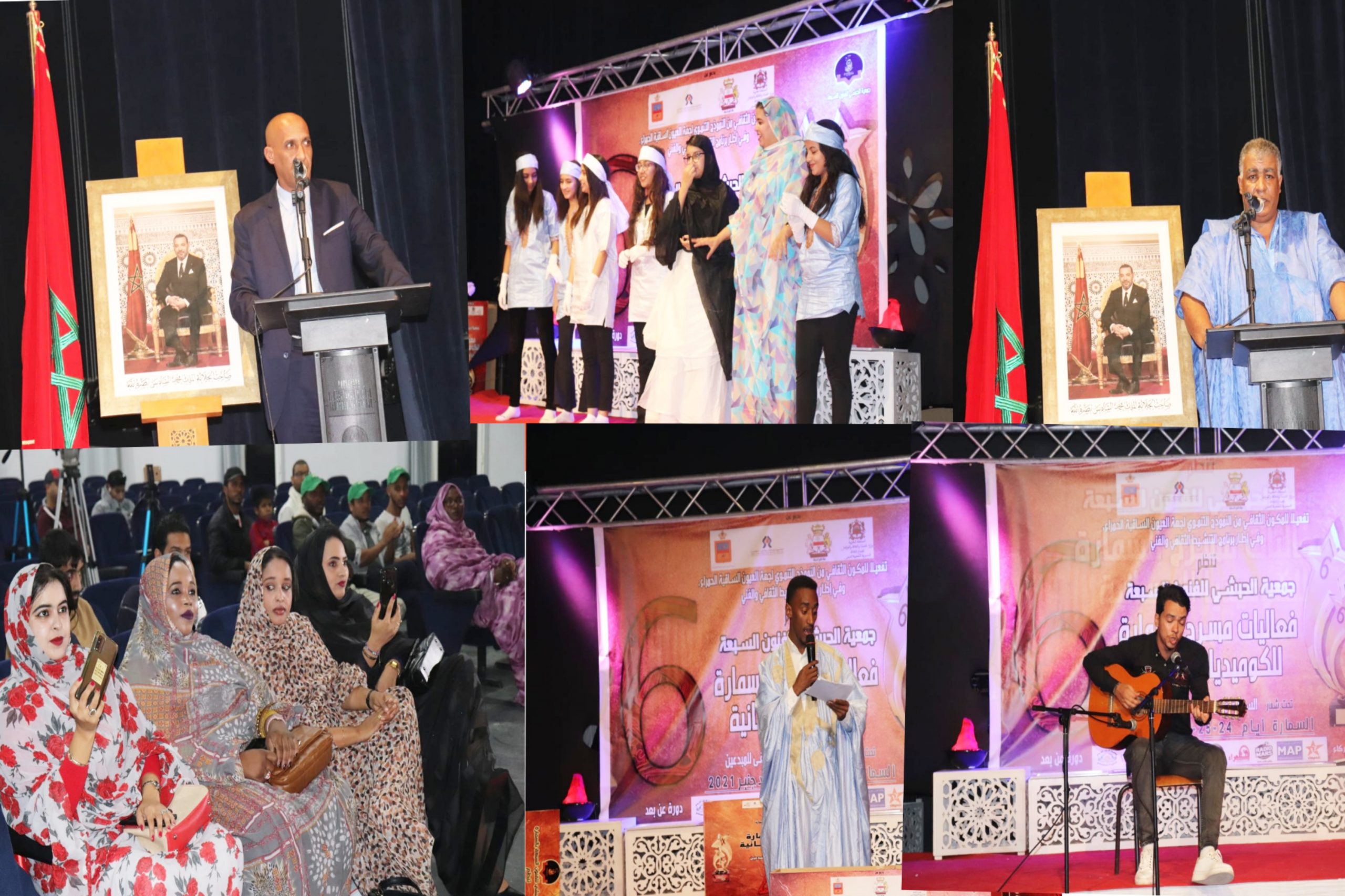 افتتحت فعاليات الدورة السادسة لمهرجان السمارة للكوميديا الحسانية والتي تأتي هذه السنة التزاما بتطبيق التدابير والإجراءات الاحترازية للوقاية من فيروس كورونا المستجد، وفي إطار المكون الثقافي برنامج التنشيط الثقافي لسنة 2021 ،التظاهرة تأتي بتنظيم جمعية الحبشي للفنون السبعة بدعم من المديرية الجهوية لوزارة الثقافة بجهة العيون الساقية الحمراء بتنسيق مع المديرية الإقليمية للثقافة بالسمارة الدورة السادسة لمهرجان السمارة للكوميديا الحسانية وذلك أيام 26/25/24 دجنبر2021.
