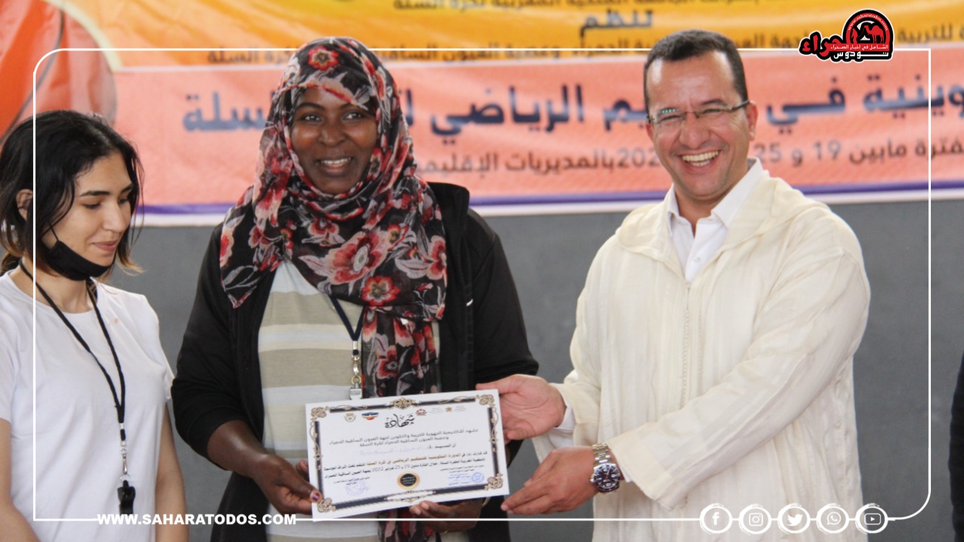 وفي الختام تم توزيع الشواهد على جميع المشاركين في هذه الدورة الأولى من نوعها بالجهة، من طرف الكاتب العام السيد أمجد التهبوش وامين مال الجامعة الملكية المغربية لكرة السلة عبد اللطيف مقداد، ورئيس عصبة العيون الساقية الحمراء ابراهيم مولاي الشريف.