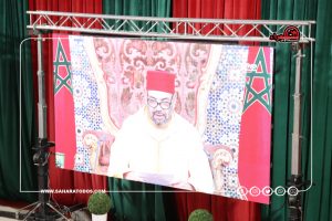 مراسيم الانصات للخطاب الملكي السامي، شهدت حضةر عدد غفير من شيوخ القبائل والشخصيات المدنية والسياسية والأمنية والقضائية وفعاليات جمعوية وثقافية ومواطني وساكنة مدينة العيون.
