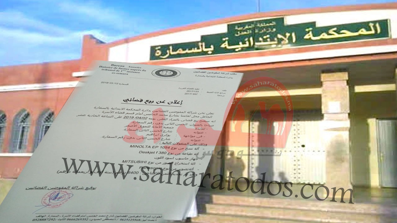 جديد الأخبار إعلان قضاٸي بالسمارة By admin في مارس 12, 2019 0 نشر صحراء توذوس : السمارة 0 نشر FacebookTwitterGoogle+WhatsAppالبريد الإلكترونيTelegram