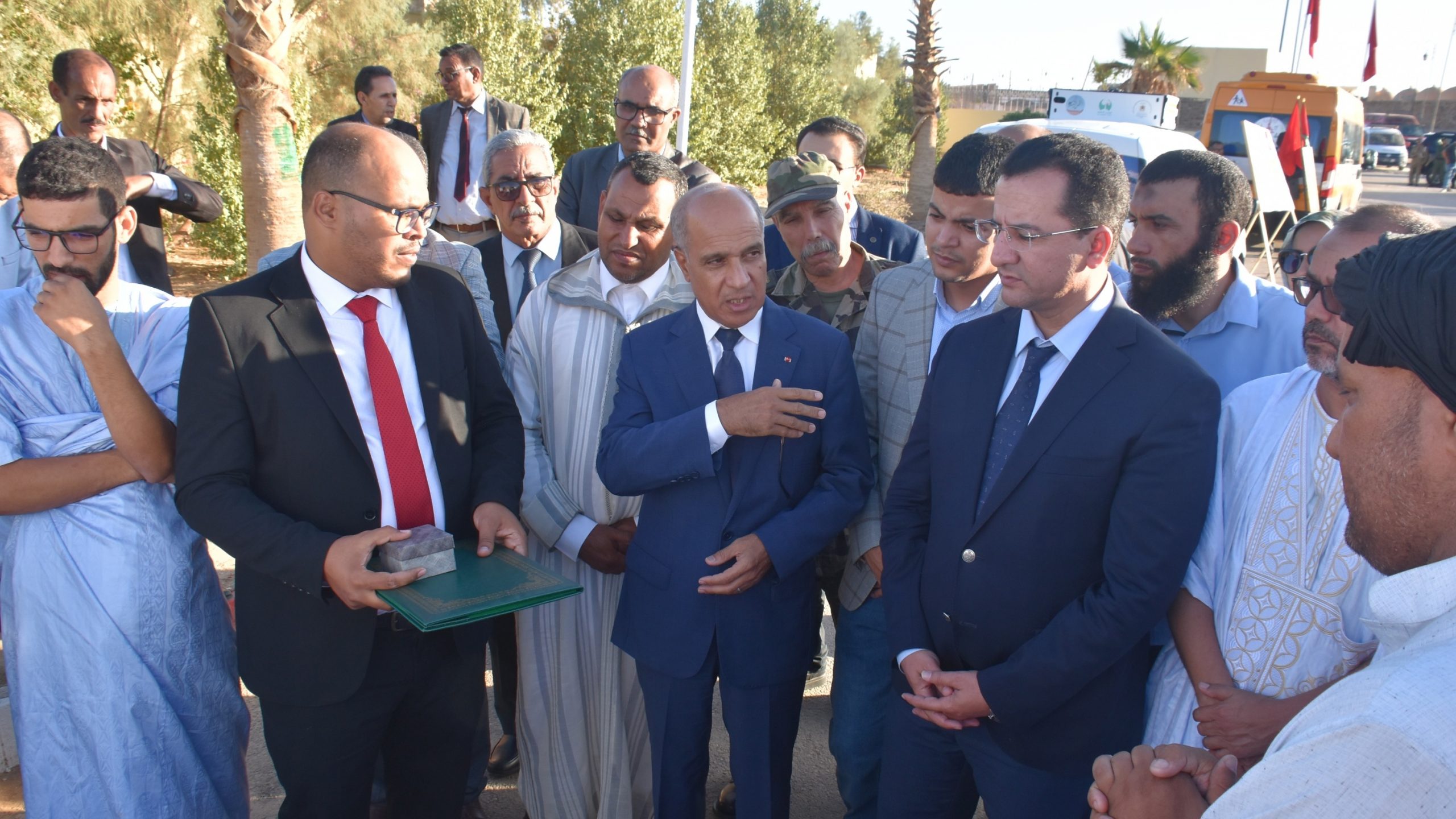 وشهدت التظاهرة بحضور الوفد الرسمي، تقديم مشاريع المبادرة الوطنية للتنمية البشرية على غرار تسليم حافلة نقل للجمعية المغربية للأشخاص ذوي الإعاقة، وكذا تسليم سيارة مبردة تهم أحد مشاريع بناء وحدة تثمين لحوم الإبل.