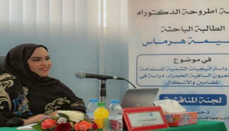 ناقشت الباحثة الجامعية نعيمة هرماس أهل باني اليوم الثلاثاء برحاب جامعة إبن زهر أطروحتها بسلك الدكتوراة في موضوع : “الإعلام واستراتيجيات التنمية المستدامة بجهة العيون الساقية الحمراء..دراسة في المضامين والأشكال”.