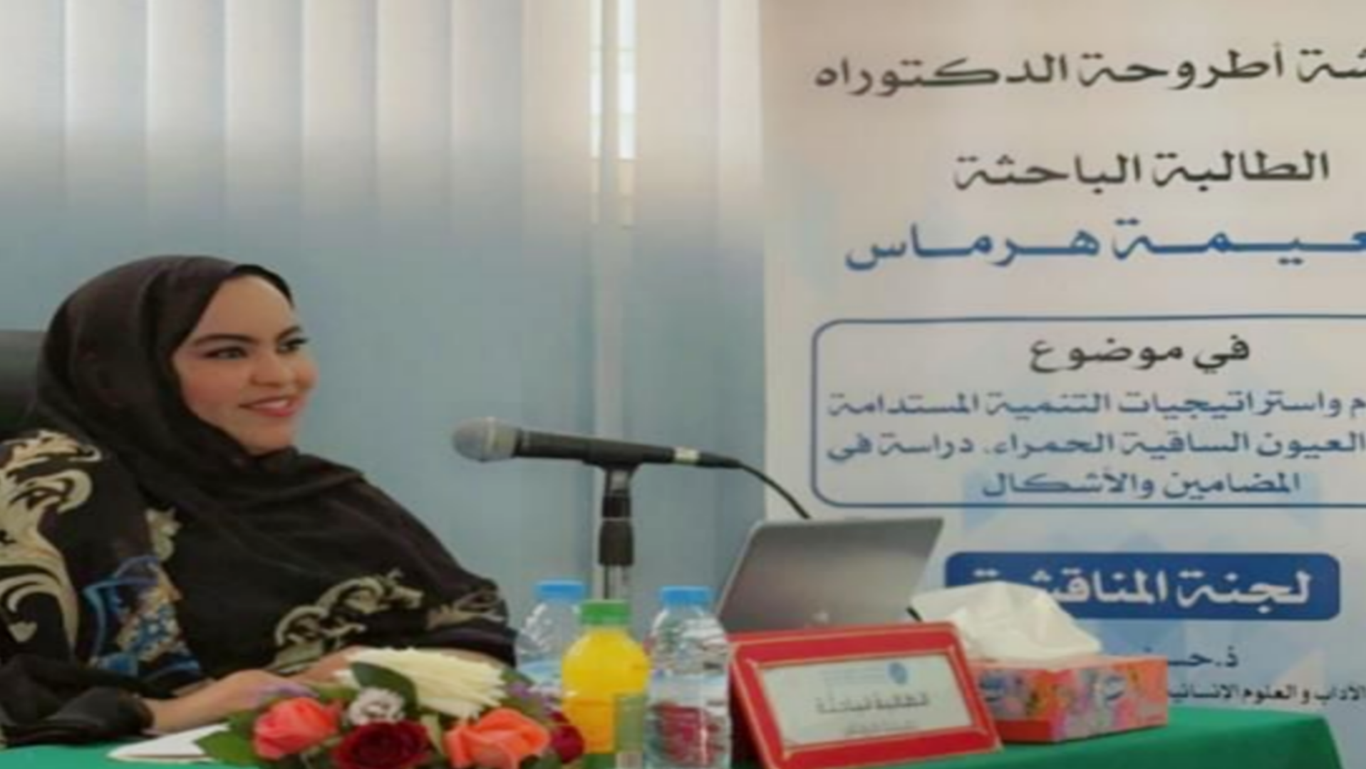 وبهذه المناسبة تتقدم إدارة جريدة صحراء توذوس بأحر تهانيها القلبية للأنسة نعيمة هرماس على تتويجها ومنحها هذا المساء درجة الدكتوراة، مع أطيب المتنيات بالنجاح والتوفيق في مسارها المهني والعلمي.