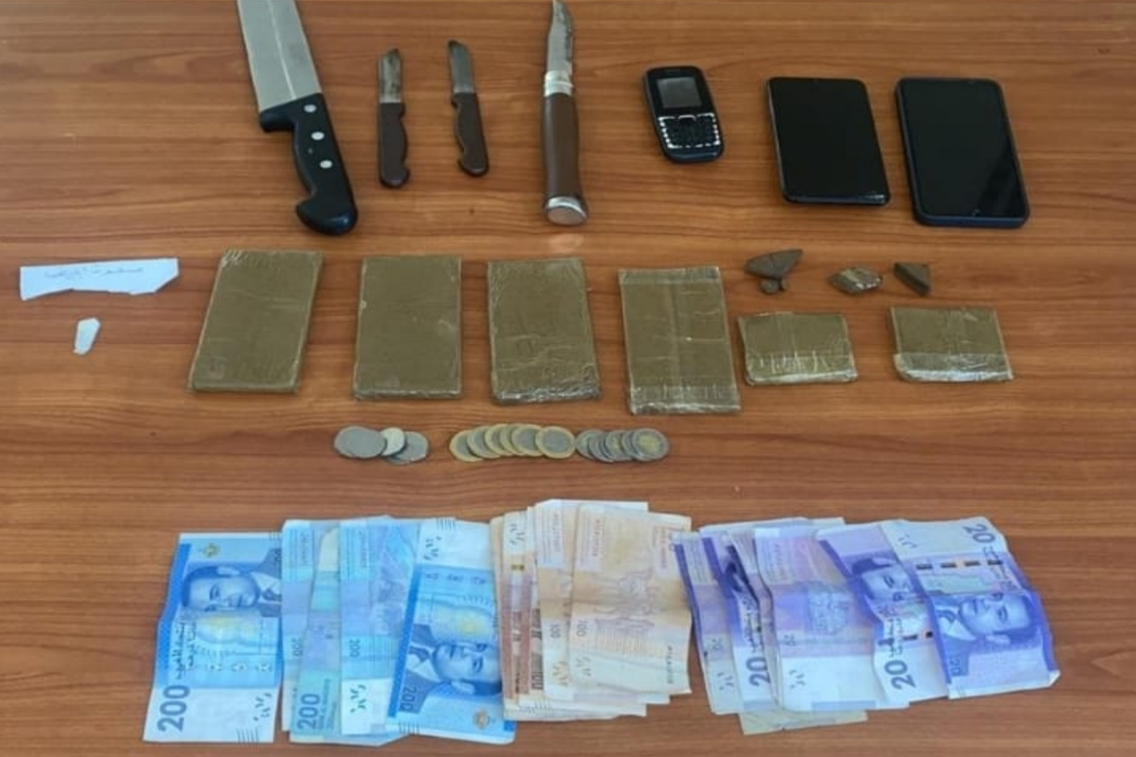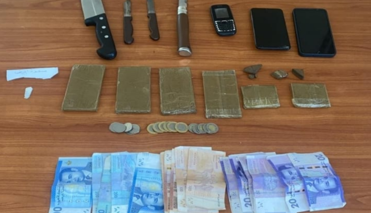 وأضاف المصدر أنه جرى إيقاف المشتبه فيه الأول على مستوى حي الوحدة بمدينة المرسى متلبسا بحيازة كمية مجزأة من مخدر الشيرا موجهة للترويج، كما أسفرت عملية التفتيش التي أجريت بداخل مسكنه عن حجز كمية أخرى من نفس المخدر، بالإضافة إلى مبلغ مالي يشتبه كونه من عائدات هذا النشاط الإجرامي، وثلاثة هواتف نقالة تبين بعد البحث أن أحدها متحصل من فعل السرقة، وكذا ثلاثة سكاكين خاصة بتقطيع المخدرات.