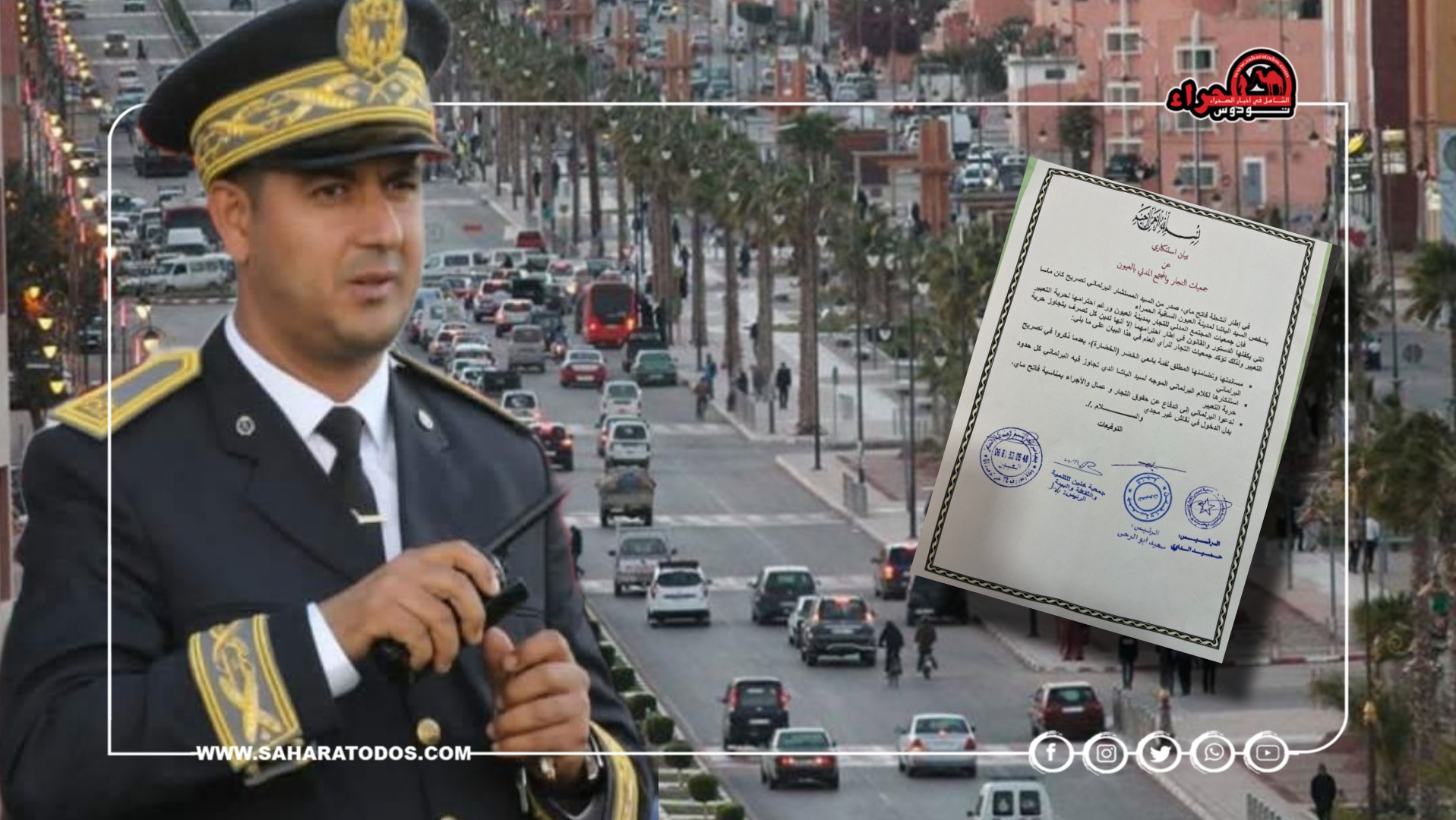 أصدرت جمعيات المجتمع المدني للتجار بالعيون، بلاغ تضامني مع باشا المدينة هشام بومهراز إثر تصريحات أدلى بها أحد المستشارين البرلمانيين خلال تجمع حاشد للاحتفالات المخلدة لذكرى فاتح ماي.