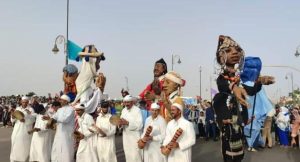 وشاركت العشرات من الجمعيات في هذا الكرنفال، تتقدمهم فرق فنية محلية وشمالية وموريتانية ومن الإمارات العربية المتحدة، وذلك وسط الأهازيج ورفع العديد من الأشكال والمجسمات واللوحات الرمزية.