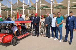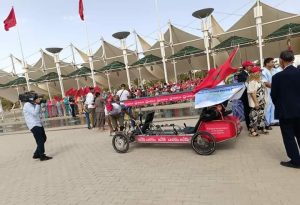 جدير بالذكر ان هذه الرحلة سوف تتم بهذه الدراجة الفريدة حيث تمت تجربتها امام الوفد الرسمي بفضاء ساحة المشور، والتي تعمل بالطاقة البدنية والطاقة الشمسية وهي من ابتكار وتصميم مغربي.