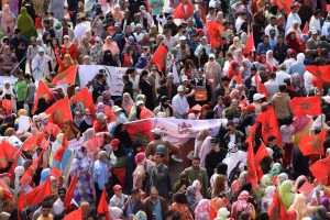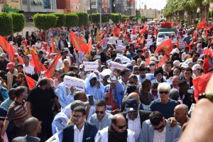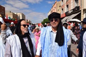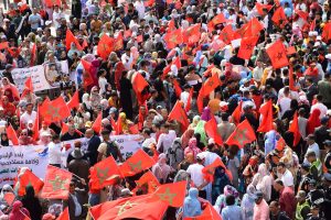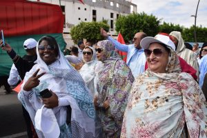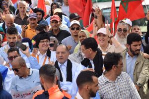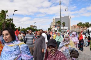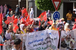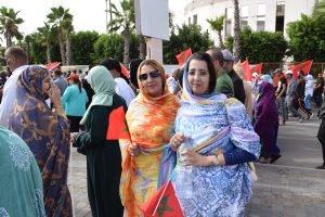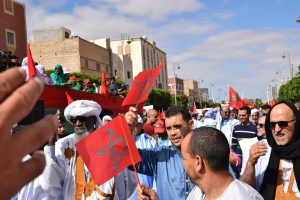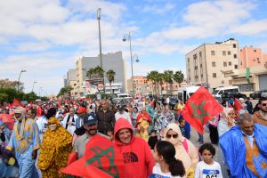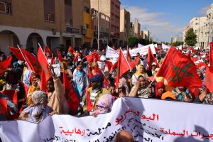 وإنطلقت المسيرة الحاشدة من ساحة ولي العهد سمو الأمير مولاي الحسن “ساحة أم السعد”، وذلك للتنديد بالاعتداء الإرهابي حيث غصت الشوارع المؤدية لساحة المشور بالآلاف من المواطنين الرافضين للاعتداء الذي استهدف مدنيين آمنين بأحياء السمارة.