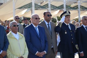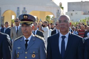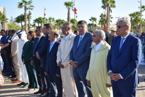 أشرف صباح اليوم الإثنين الوالي عبد السلام بيكرات على مراسيم أداء تحية العلم الوطني بساحة المشور السعيد بالعيون، بحضور وزير الصحة خالد ايت طالب ومولاي حمدي ولد الرشيد رئيس جماعة العيون.