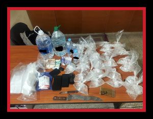 كما تم حجز صفيحة ومجموعة من قطع مخدر الشيرا، علاوة على سكينين أحدهما كبير الحجم وآخر صغير الحجم خاص بتقطيع المخدر، بالإضافة إلى مبلغ مالي يشتبه كونه من عائدات هذا النشاط الإجرامي.