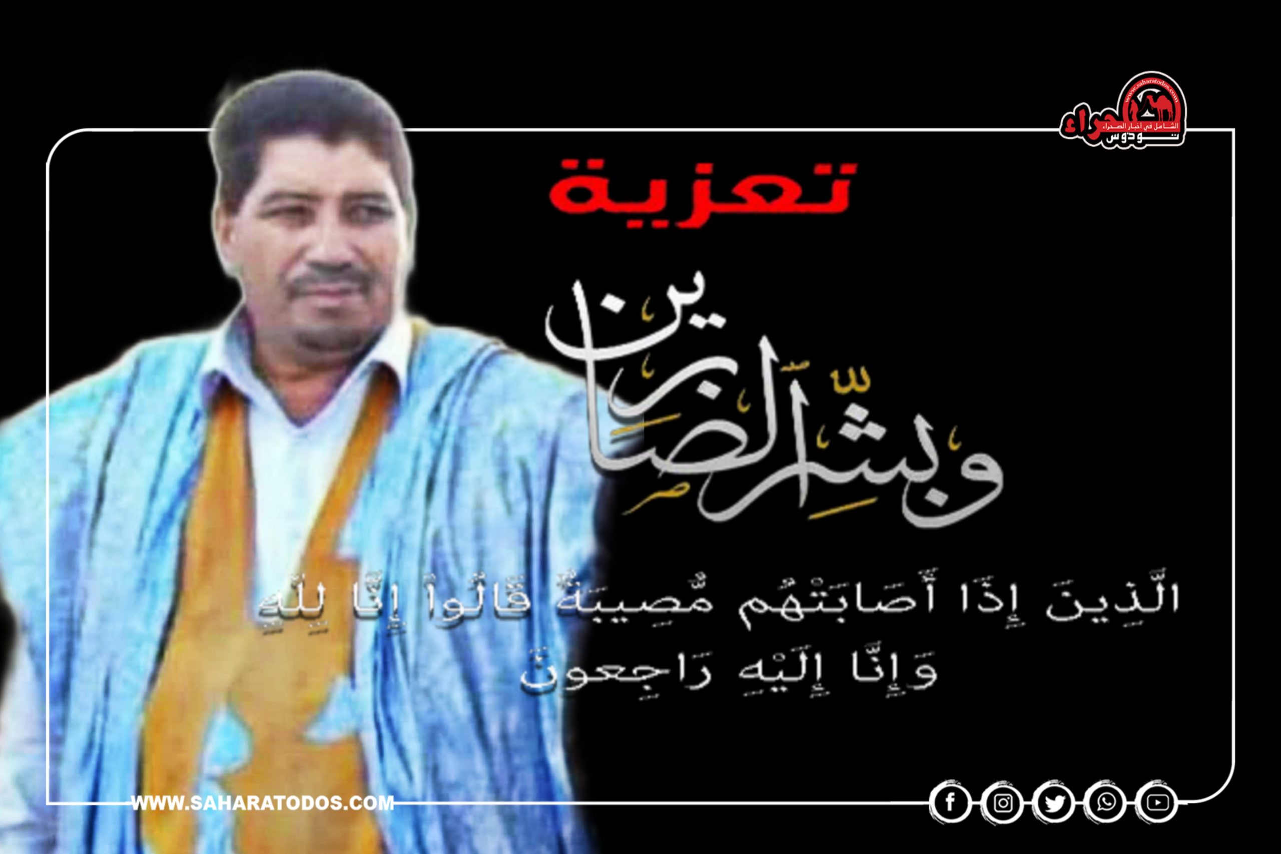 وبهذه المناسبة الأليمة يتقدم طاقم “صحراء توذوس” بأحر التعازي القلبية الصادقة لعائلة “أهل الراحل” وأسرة الفقيد من أبناءه البررة كل من شاكر ونوردين وجمال وفيصل.