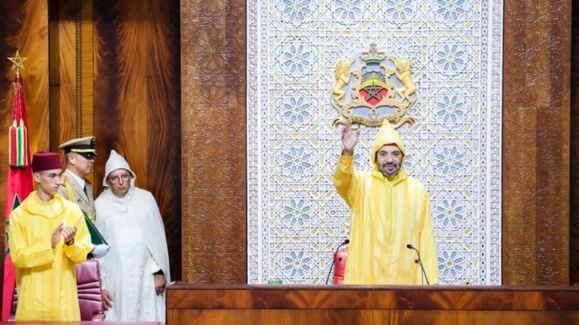 وجه صاحب الجلالة الملك محمد السادس، نصره الله، مرفوقا بولي العهد صاحب السمو الملكي الأمير مولاي الحسن وبصاحب السمو الملكي الأمير مولاي رشيد، اليوم الجمعة، خطابا ساميا إلى أعضاء البرلمان بمناسبة افتتاح الدورة الأولى من السنة التشريعية الرابعة من الولاية التشريعية الحادية عشرة.