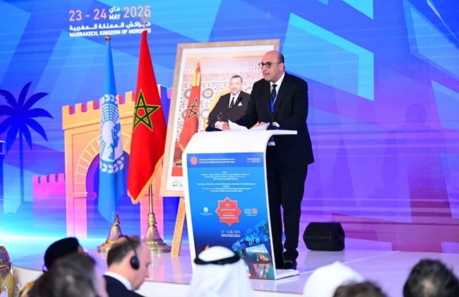 تجدر الإشارة إلى أن مدينة مراكش تحتضن، يومي 23 و24 ماي 2025، فعاليات الدورة الثالثة من منتدى مراكش الاقتصادي البرلماني، المنظم تحت الرعاية الملكية، بمبادرة من مجلس المستشارين والجمعية البرلمانية للبحر الأبيض المتوسط، وذلك تحت شعار: “تحديات اقتصادية وتجارية وطاقية غير مسبوقة – استجابة البرلمانات الإقليمية والقطاع الخاص”.