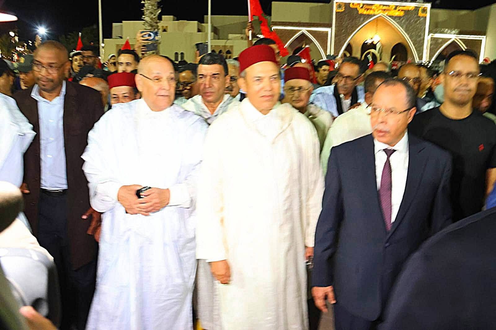 وحضر هذه الأجواء الاحتفالية والي جهة العيون الساقية الحمراء عبد السلام بكرات، ورئيس جماعة العيون مولاي حمدي ولد الرشيد، إلى جانب عدد من المنتخبين والفعاليات المدنية، حيث تقاسمت الجماهير لحظات الفرح في مشهد يجسد عمق الالتفاف الشعبي حول الثوابت الوطنية.