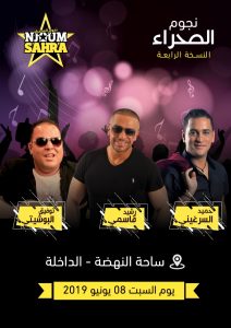 كشف مهرجان نجوم الصحراء عن أسماء النجوم الذين سيحيون حفلات دورته الرابعة والتي ستنطلق فعاليتها بمدينة الداخلة تزامنا مع ثالث أيام العيد يوم السبت 08 يونيو 2019 بساحة الحسن الثاني وساحة النهضة بحي الوحدة.