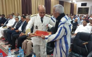 وبهذه المناسبة ألقى السيد الوالي جودا بإسم المندوبية السامية لقدماء المقاومين و اعضاء جيش التحرير كلمة عرج خلالها على تاريخ هذه الذكرى التي اعتبرها من من أعز الذكريات الوطنية المجيدة و التي جسدت أروع صور الكفاح الوطني و النضال البطولي الذي خاضه الشعب المغربي بقيادة العرش العلوي المجيد في سبيل حرية الوطن و تحقيق استقلاله ورخاء شعبه ،ونيابة عن أسرة المقاومين وأعضاء جيش التحرير تم رفع برقية ولاء وإخلاص إلى السدة العالية بالله تلتها إبنة المقاوم ورجل السلطة سلمى ولد سيدي مولود .