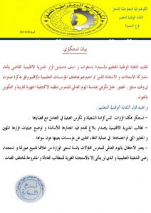 وطالبت النقابة الوطنية للتعليم فرع السمارة من المديرية الإقليمية بإصدار بلاغ تقدم فيه اعتذارها للأساتذة،وتوضح حيثيات قرارها المهين والمعايير التي تم اعتمادها في عملية انتقاء ممثلين عن مؤسسات دون عينها حسب ذات البيان.