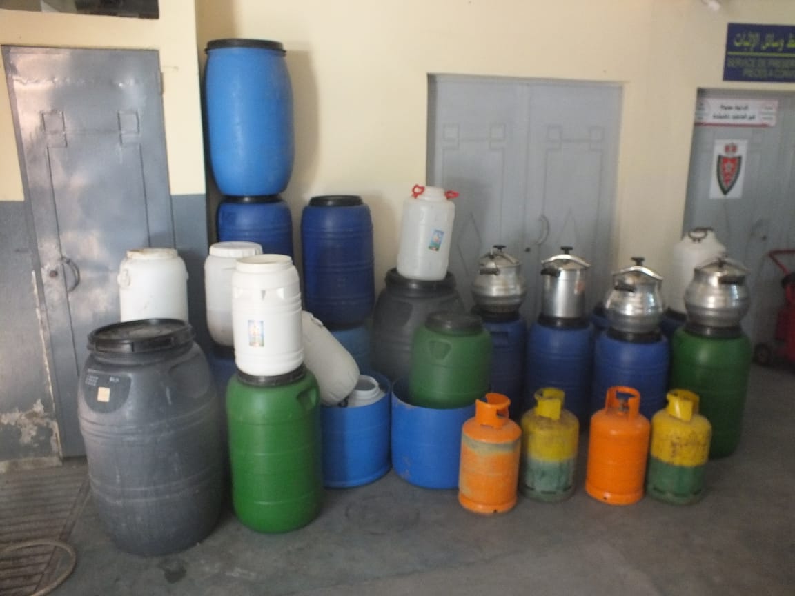 علم من لدن مصدر أمني لصحراء توذوس أنه استنادا إلى معلومات متوفرة لدى مجموعة الأبحاث والتدخل التابعة للأمن العمومي بولاية أمن العيون، كون أحد الأشخاص يقوم بتقطير مسكر ماء الحياة بمنزله الكائن بحي التعاون، انتقلت عناصر المجموعة إلى عين المكان لتقوم بفرض مراقبة سرية وتربص مما مكن من إيقاف المشتبه فيه متلبسا بحيازة خمس لترات من مسكر ماء الحياة.