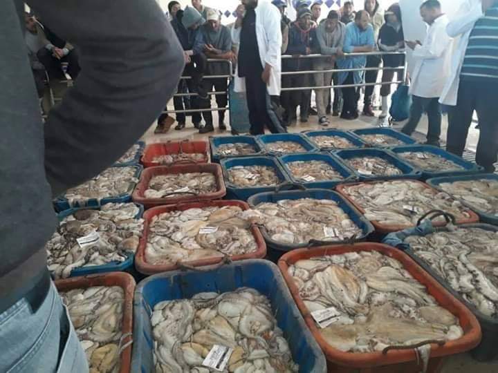 فيما سوق السمك ب”انتيرفت” عرف فيه سعر الأخطبوط تأرجح مابين (79-95) دراهم للكيلوغرام الواحد.