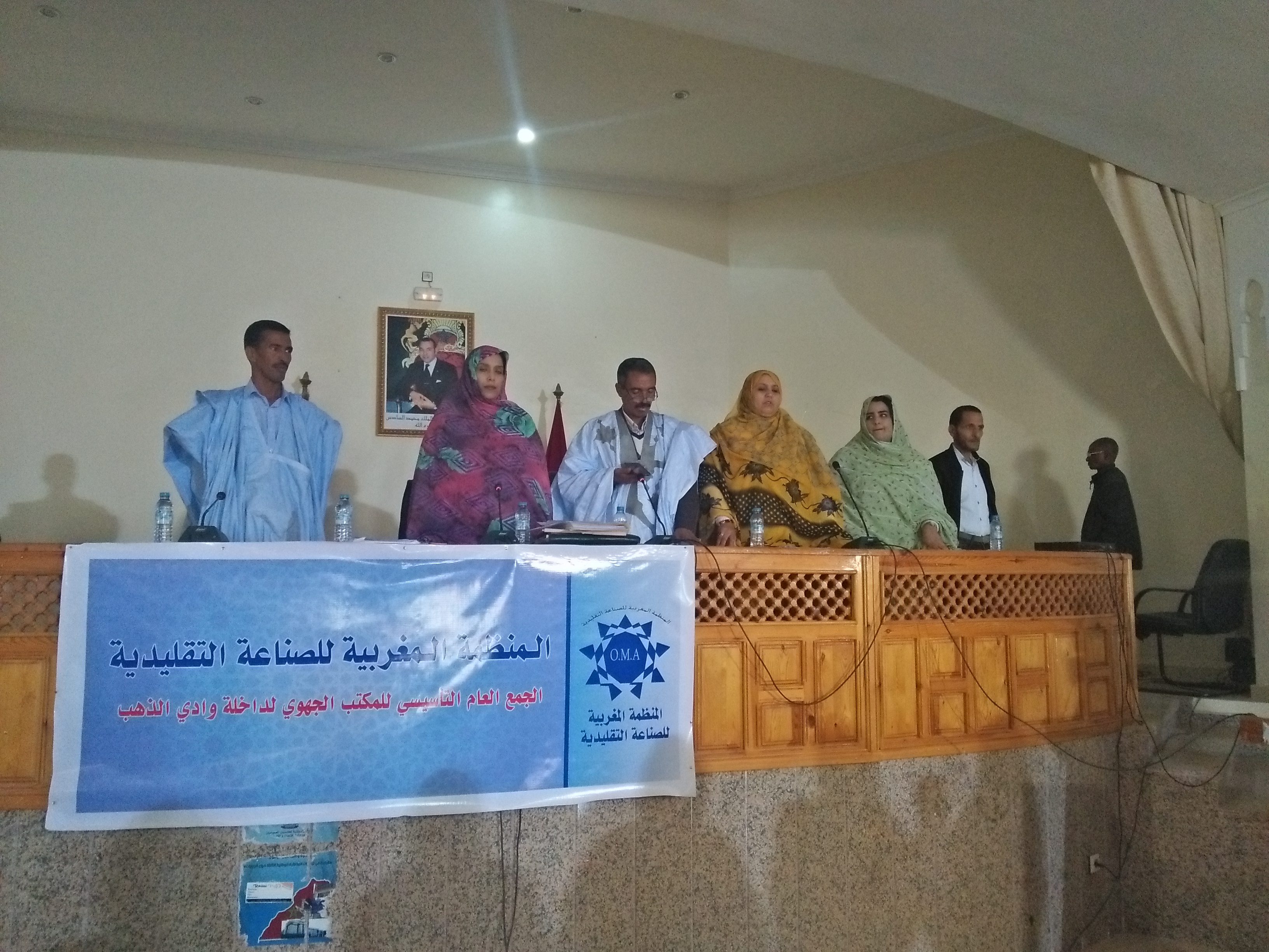 إحتضنت القاعة الشرفية بمدينة الداخلة مساء أول يوم أمس الثلاثاء 03مارس2020 ،فعاليات الجمع العام التأسيسي للمكتب الجهوي للمنظمة المغربية للصناعة التقليدية بجهة الداخلة وادي الذهب اشرف عليه المكتب المركزي وشهد حضور الصناع والصانعات التقليديات بالجهة من اجل المشاركة في تأسيس المكتب الجهوي وبعد قراءة القانون الاساسي اسفرت نتائج الجمع العام التأسيسي عن مكتب نسائي محض جاء على الشكل التالي :