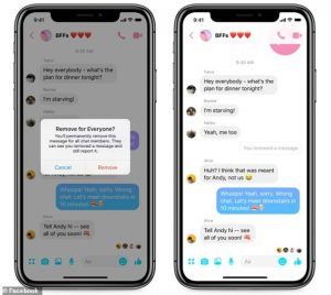 أعلنت شركة فيسبوك عن إطلاق ميزة “إلغاء الإرسال” (unsend)، التي طال انتظارها، ما يمنح المستخدمين القدرة على حذف الرسالة خلال 10 دقائق من إرسالها، حتى في الدردشة الجماعية.