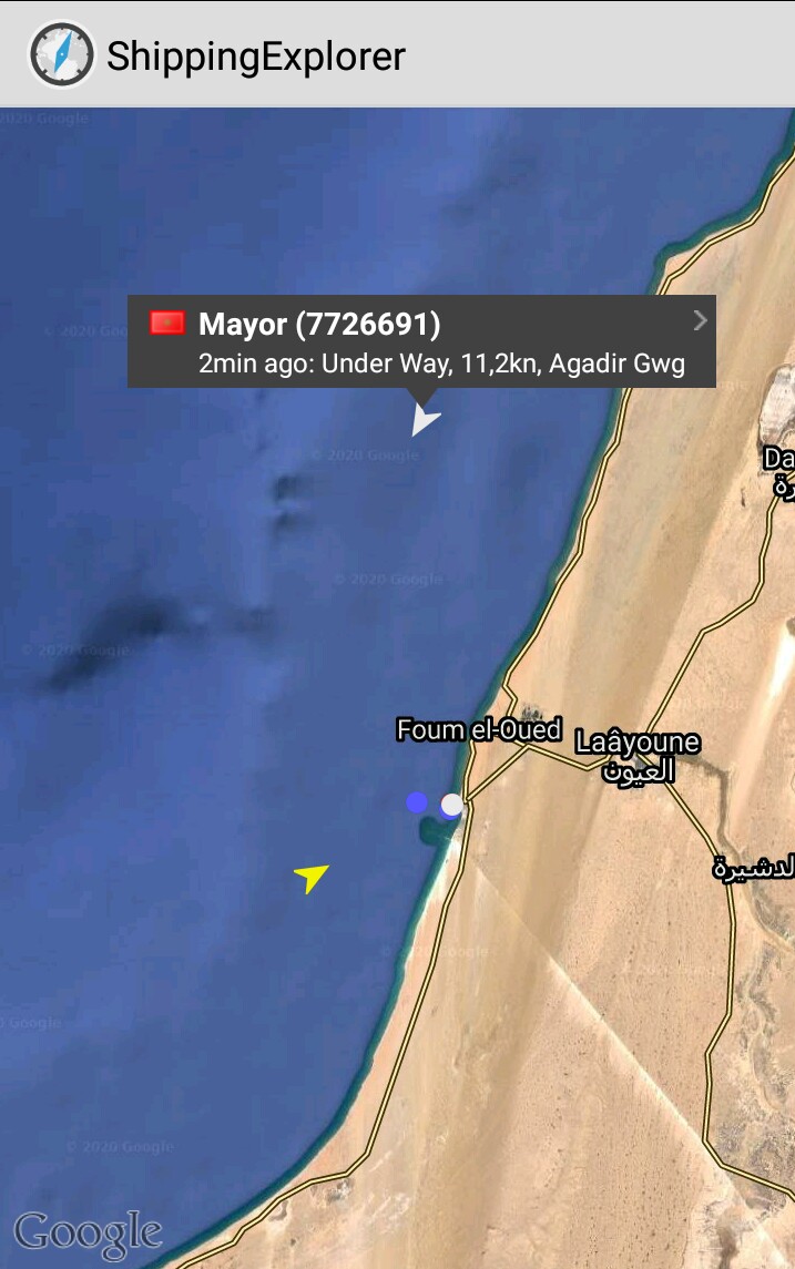 السفينة وفقا لذات المصدر،كانت في ميناء أكادير لمدة شهرين من أجل الإصلاح واعادة الترميم وقد تم رصدها بالمياه الإقليمية للمملكة قبالة جماعة فم الواد صباحا متجهة صوب ميناء الداخلة بطاقم متكون من عشرة أفراد من المتوقع أن تصل غدا صباحا للميناء .