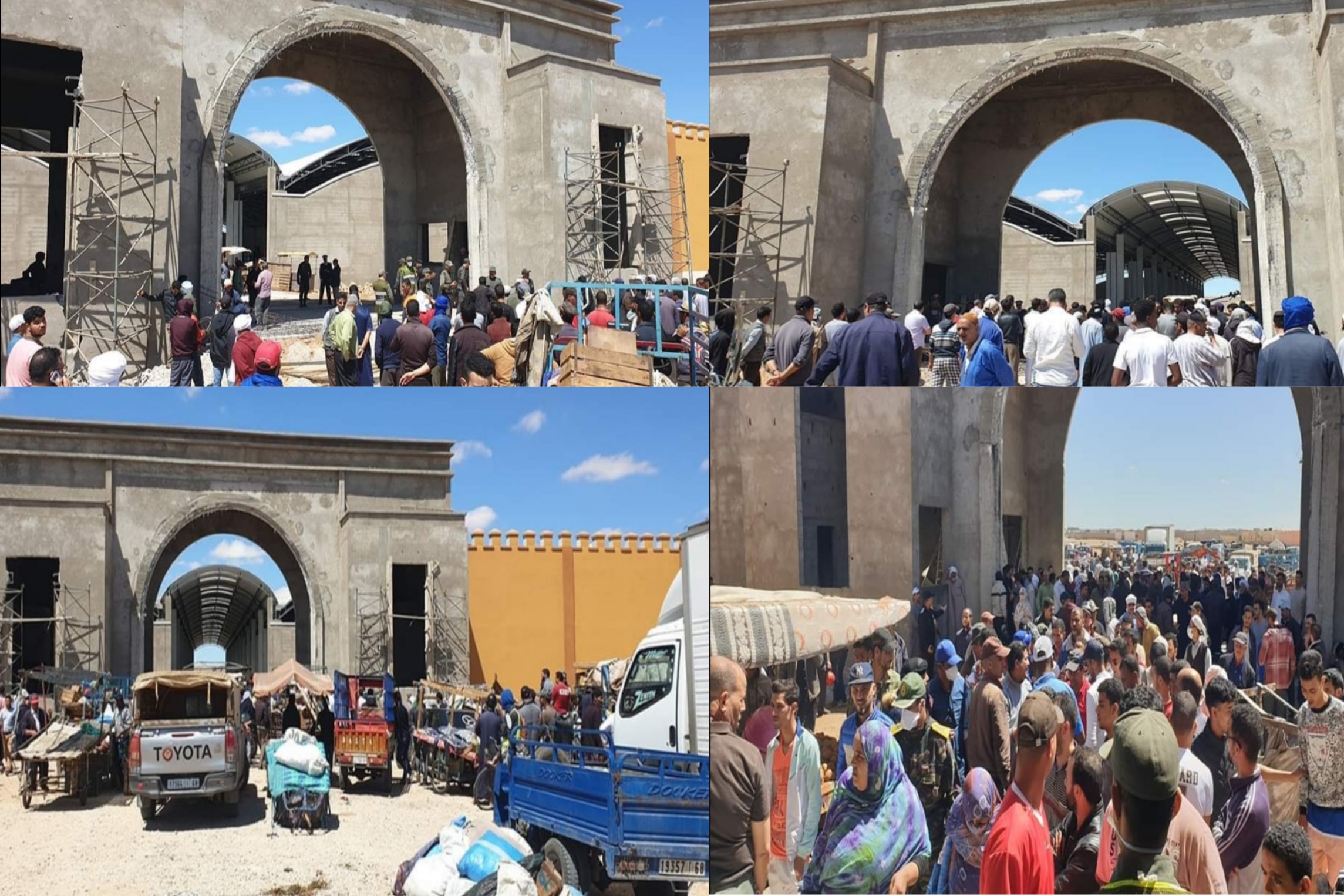 تناول عدد من النشطاء بموقع التواصل الاجتماعي “فيسبوك” بمدينة العيون مجموعة من الصور التي توثق لما حدث اليوم الثلاثاء بالسوق النموذجي الواقع شرق المدينة، من تجمعات للمواطنين والباعة المتجولين الراغبين في الحصول وحجز مكان للبيع داخل السوق المخصص لبائعي الخضر والفواكه.