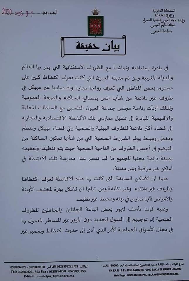 جديد الأخبار عاجل.. جماعة العيون تصدر بلاغا توضح فيه دواعي الاكتظاظ بالسوق النموذجي By admin في أبريل 1, 2020 0 نشر صحراء توذوس العيون 0 نشر FacebookTwitterGoogle+WhatsAppالبريد الإلكترونيTelegram