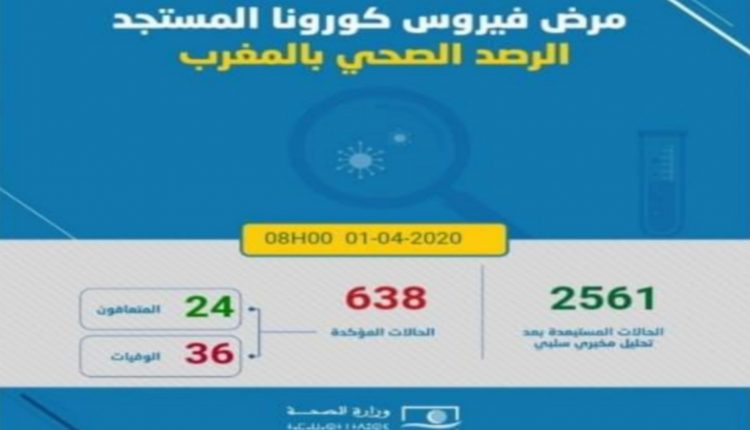 وتم تسجيل 21 حالة إصابة مؤكدة جديدة بفيروس كورونا المستجد، وفق البيانات الرسمية لصباح اليوم الأربعاء، ليرتفع العدد الإجمالي للمصابين بالفيروس في المغرب إلى 638 حالة.
