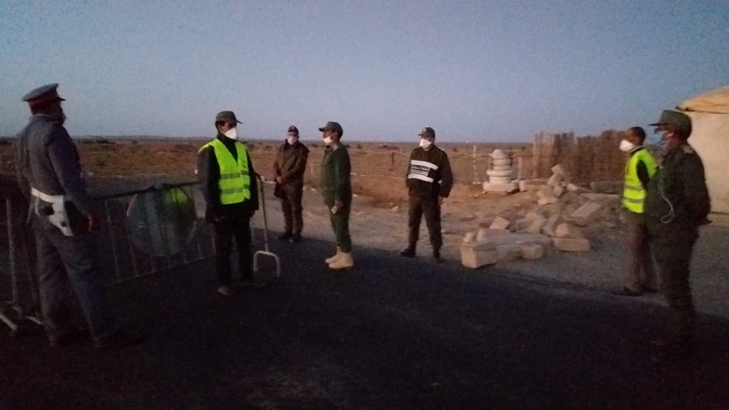 ظهر أعوان السلطة المرابطين بنقطة المراقبة بالبوابة الشمالية بمدشر وادي الساقية الحمراء مساء اليوم يرتدون سترات خضراء مكتوب عليها ” عون سلطة” وهي أول مرة منذ إعلان حالة الطوارئ بالبلاد من أجل مكافحة فيروس كورونا المستجد ،يتم تخصيص سترات خاصة لهذه الفئة التي تشتغل في صمت وتوجد في الخطوط الأمامية مع السلطات المحلية والاطقم الطبية والدرك والامن الوطني والقوات المساعدة ورجال الوقاية المدنية بالسمارة .