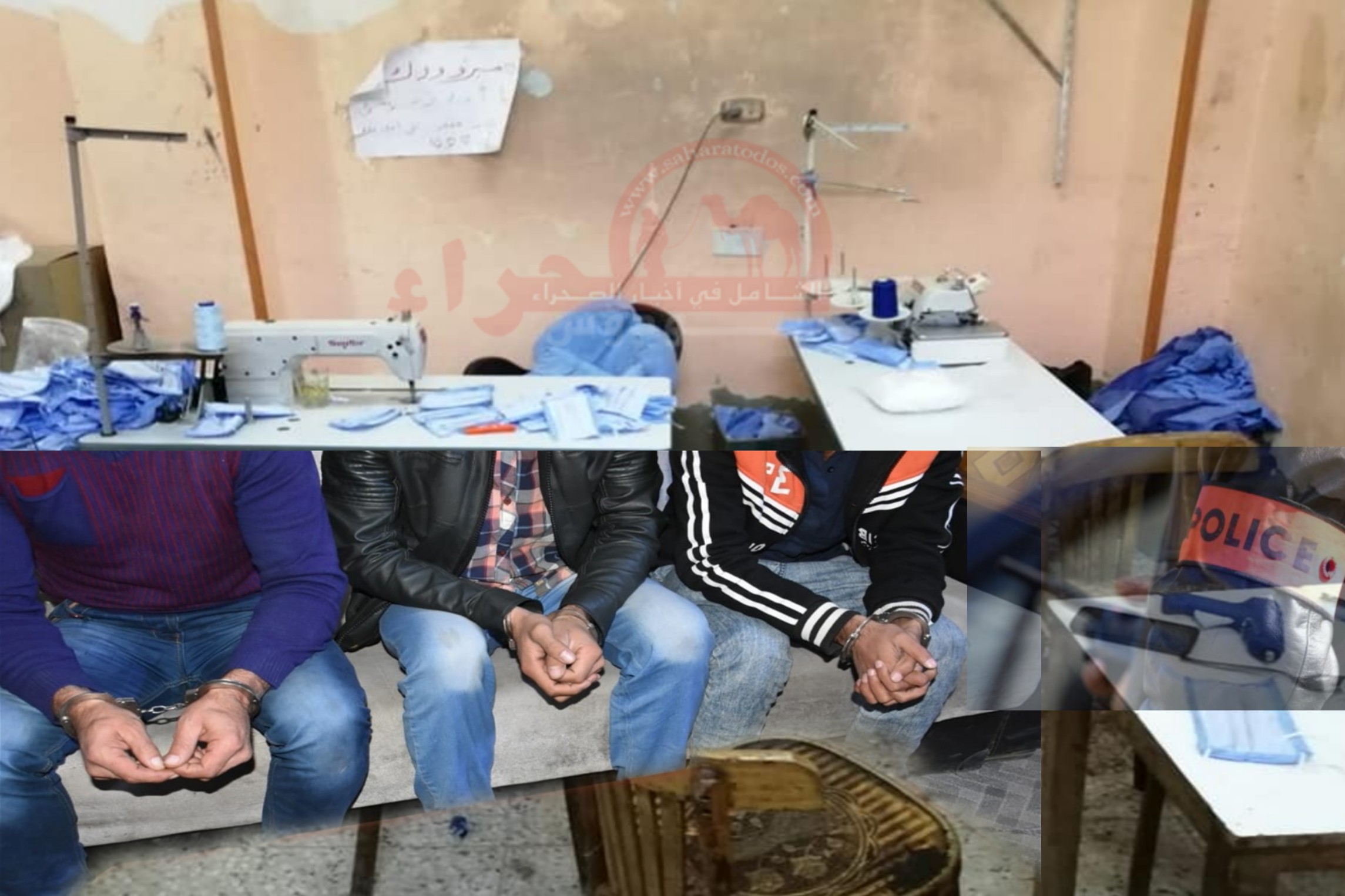 وأضاف المصدر أن عملية التفتيش التي قامت بعا العناصر الأمنية، أسفرت عن حجز الة الخياطة ومجموعة من المعدات الاخرى كانت تستعمل في خياطة الكمائم ،كما تم حجز 280 كمامة إضافية مختلفة الالوان و حوالي 300 كيس كبير الحجم خاص بالتبضع و مناديل ورقية، (كلينيكس ).