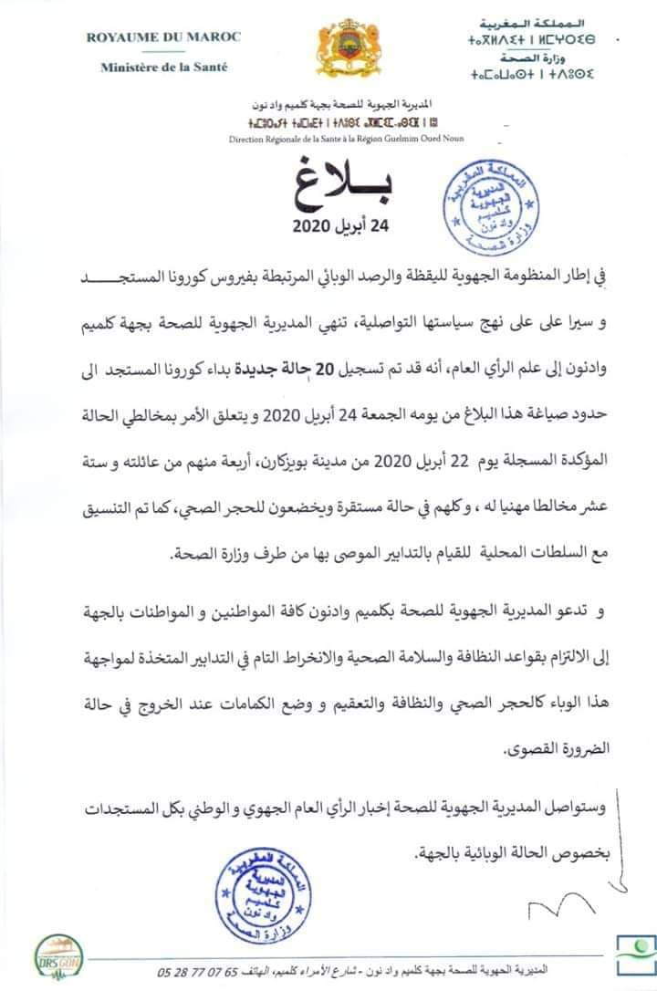 جديد الأخبار المديرية الجهوية للصحة بكلميم.. تسجيل 20 حالة جديدة بفيروس كورونا ( بلاغ) By admin في أبريل 24, 2020 0 نشر صحراء توذوس كلميم 0 نشر FacebookTwitterGoogle+WhatsAppالبريد الإلكترونيTelegram